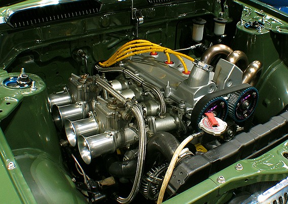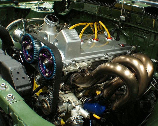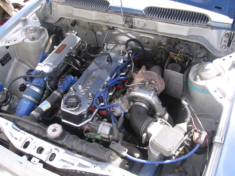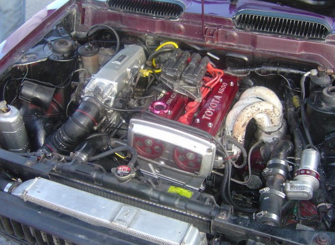 Direct bolt-in. The main difference is the crankshaft stroke. The bore diameter is the same as a 2TC. It is possible to put a 3T crank into a 2TC, but you have to grind a few areas of the block to prevent the rod bolts from hitting, so it's usually easier to just use the 3T block. It is common to use a 3T crank (or block) in a 2TG. 3TC turbo setups are the most popular for high horse power and drag applications. Swapping a plain 3TC block by itself does not gain you much power, but the 3T block in combination with a good selection of other mods can result in substantial power increases from a stock 2TC. Parts are easily available and probably the easiest high power mods you can make. Here's some good examples: Direct bolt-in. 'G' stands for twin cam. The stock 2TG came with Mikuni Solex sidedraft carbs. You can only get these motors from Japan import places. These are old 1970s motors, so are most likely coroded and will require a complete rebuild and new carbs. Other differences from a 2TC: The upper timing chain has an oil pressurized tensioner you have to know how to adjust. And the water neck and heater water hose connections are in different locations, so you have to get creative using different hoses. I'd say the only real pain compared to a 2TC is adjusting the valve clearances. 3TGTE - For info on this, check out my SR5 project<\/a>. Sold in Japan only in Celicas around 1983. Not really a direct bolt-in. Lot's of mods required. Originally came with a W55 transmission. The 3T flywheel is drilled for an 83 Celica\/Supra clutch. You can use a T5 tranny but you will need to use the stock 2T flywheel and the tranny might not handle the power. If you use the W55 tranny, you need to cut the shifter hole back (shifter is about 2 or 3' farther back than the T5). You also will need a custom driveshaft and tranny crossmember. This is fuel injected so you will need a high pressure fuel pump, larger diameter fuel lines, pressure regulator, return line, ignition ECU computer, etc. Not an easy swap unless you know what you are doing. This is the motor used in mid 80s Corolla (AE86) and MR2. There are even more performance parts still available\r\nfor this. Check out this site for info on 4AG engine swaps<\/a>. Another popular swap. I don't have any info on this other than a few photos. If you are even more aggressive, you can attempt an aluminum V8 installation. Going non-Toyota powerplant is frowned upon by some, but I say what ever works best for you.<\/P>\r\n A common choice due to availability of performance parts and how light it weighs. <\/P>","Engine Swaps","page"]